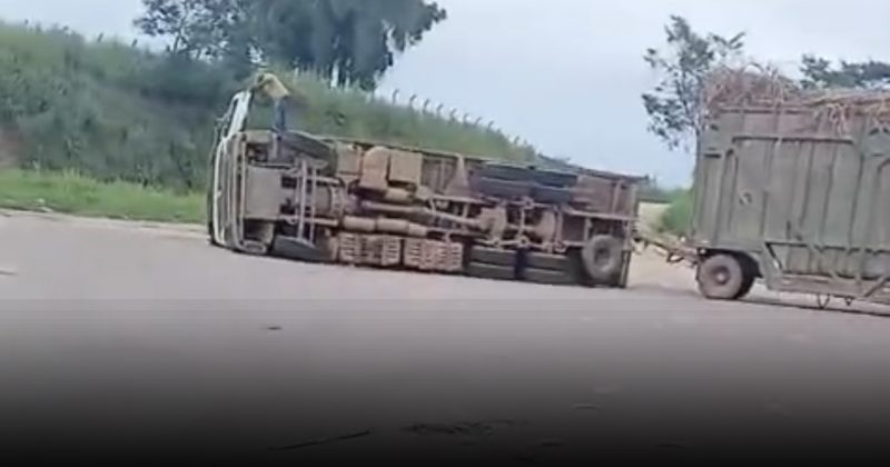 Mata NorteRegiões 29/03/2026 Paudalho Online Motorista perde controle de tremião e tomba em retorno da BR 408 em Paudalho
