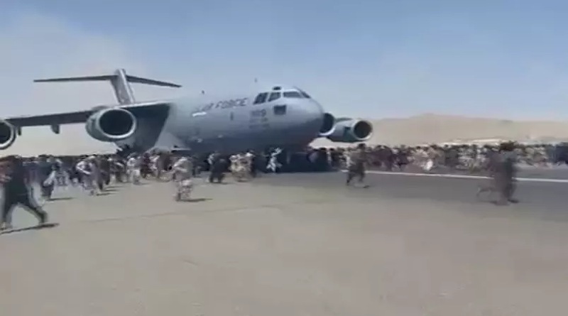 O vídeo de afegãos correndo com o avião se tornou viral, assim como as imagens de pessoas caindo da lateral do avião já no ar.