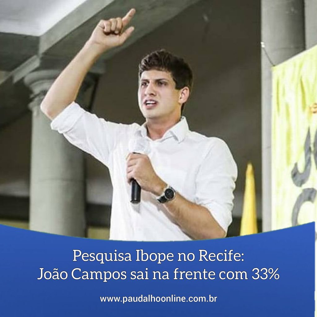Ibope Recife: João Campos sobe dez pontos e chega a 33% das intenções de voto