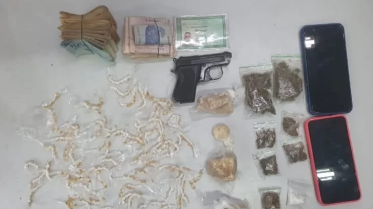 Após denúncias, uma equipe da PM esteve no local e constatou que a mulher estava traficando drogas na sua residência, localizado na rua já citada acima. Ao revistar a casa da mulher, foram encontrados 408 pedras de crack, porções de maconha, uma pistola calibre 38 com munições e R$5 mil reais em espécie.