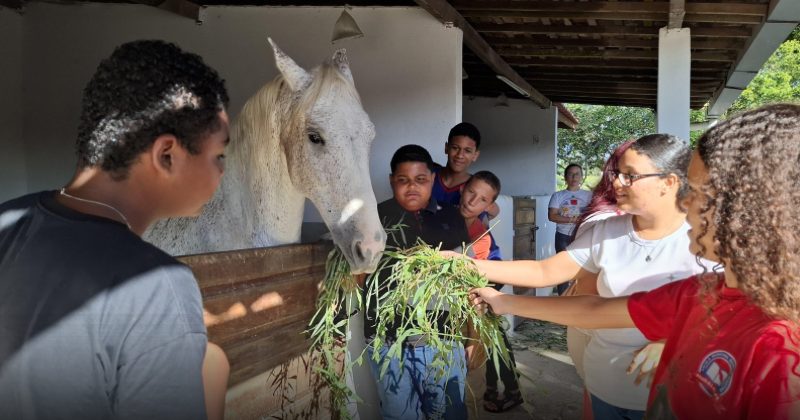 O encontro aconteceu na Fazenda Sol Nascente e proporcionou aos alunos um dia repleto de experiências, com atividades sensório-motoras, contato com animais e momentos de socialização. As práticas foram acompanhadas pelos profissionais de apoio escolar, garantindo a segurança e o estímulo ao desenvolvimento dos estudantes.