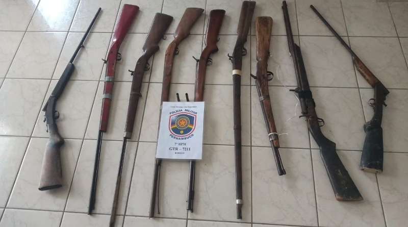Os suspeitos não se encontravam no local, mas em um casebre foram localizadas sete espingardas do tipo soca-soca e duas espingardas calibres 36, além de dois cartuchos deflagrados do mesmo calibre. O material apreendido foi entregue na Delegacia de Polícia Civil da cidade para a tomada das providências cabíveis.