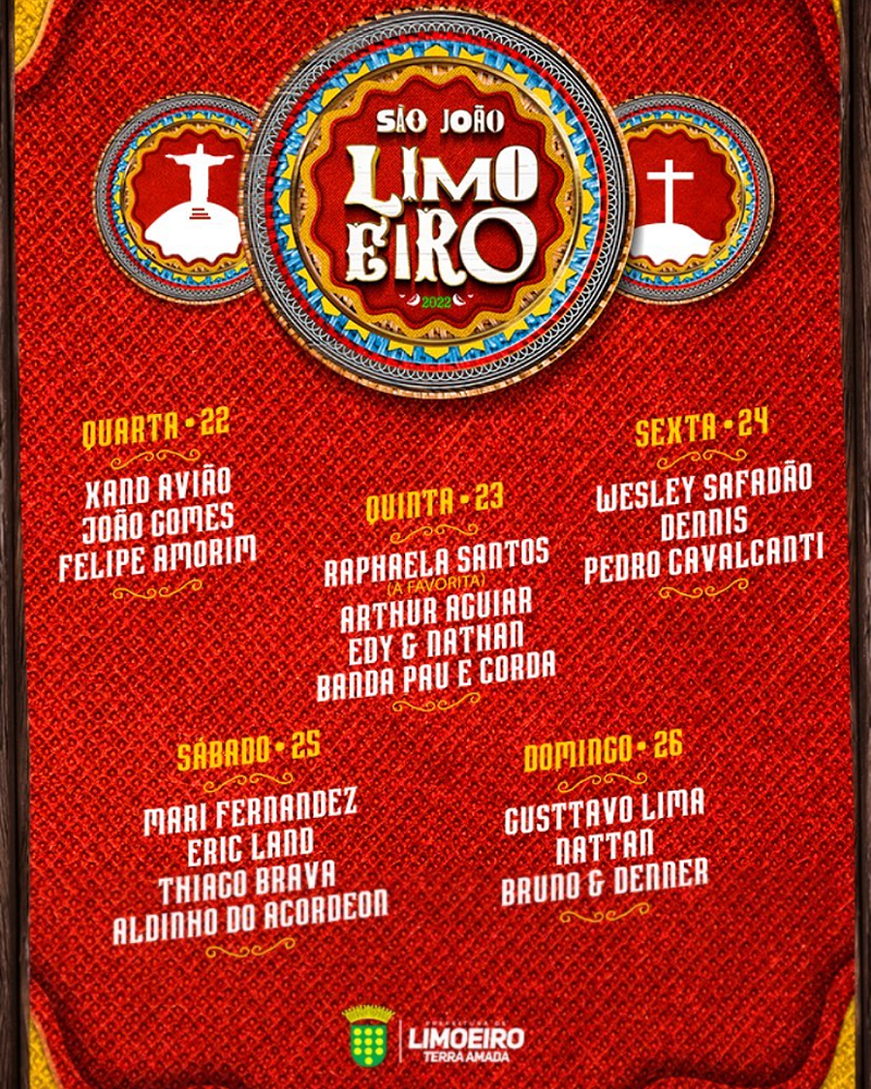 Programação do são João de Limoeiro é divulgada, confira lista de artistas