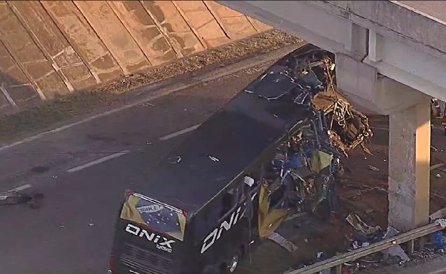 O acidente foi na madrugada de sexta-feira (5). O ônibus saiu de Itapeva com destino a Aparecida, no interior de São Paulo. Pouco depois da meia-noite, o motorista perdeu o controle do veículo e bateu em uma coluna do viaduto.