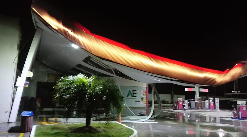Nesta madrugada de domingo (11), o teto do posto de combustível desabou em Guadalajara, Paudalho.